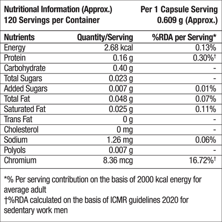 • Supports the body’s ability to metabolize glucose and maintain healthy sugar levels*